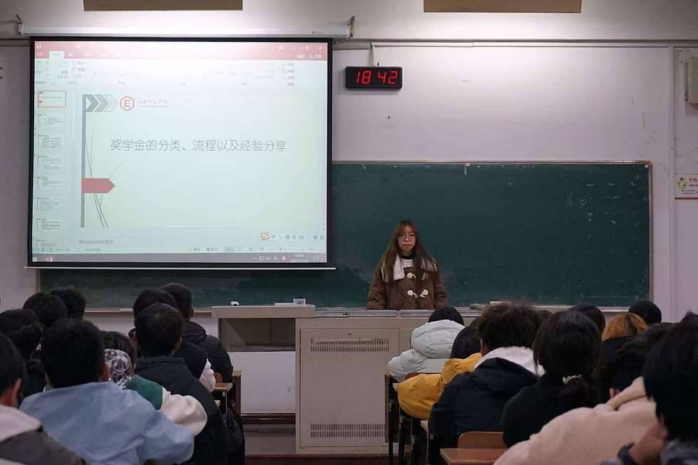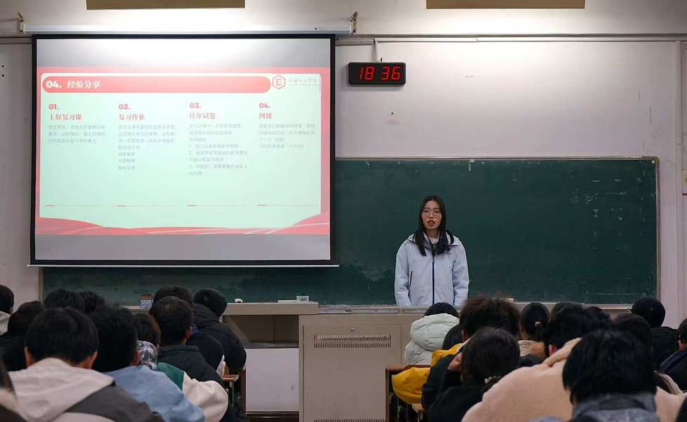 會上,兩位同學(xué)圍繞獎學(xué)金類型、學(xué)習(xí)規(guī)劃與綜合素質(zhì)拓展等方面展開分享。她們系統(tǒng)介紹了學(xué)院設(shè)立的各類獎學(xué)金,并基于自身經(jīng)驗,強調(diào)了“預(yù)習(xí)-聽課-復(fù)習(xí)”的高效學(xué)習(xí)閉環(huán),以及通過考證、競賽、學(xué)生工作與志愿服務(wù)等途徑提升綜合能力的重要性。她們鼓勵大家勇于嘗試、主動爭取。