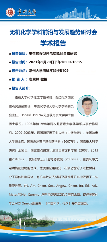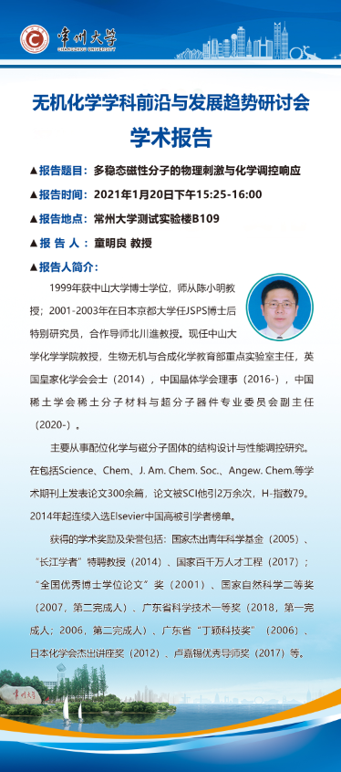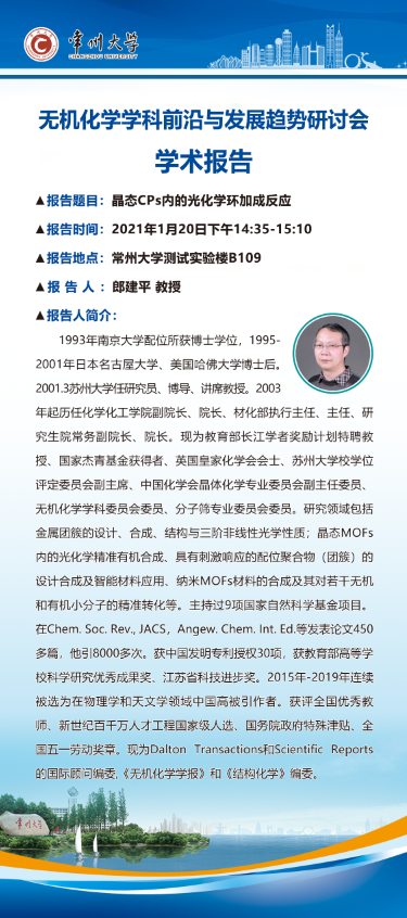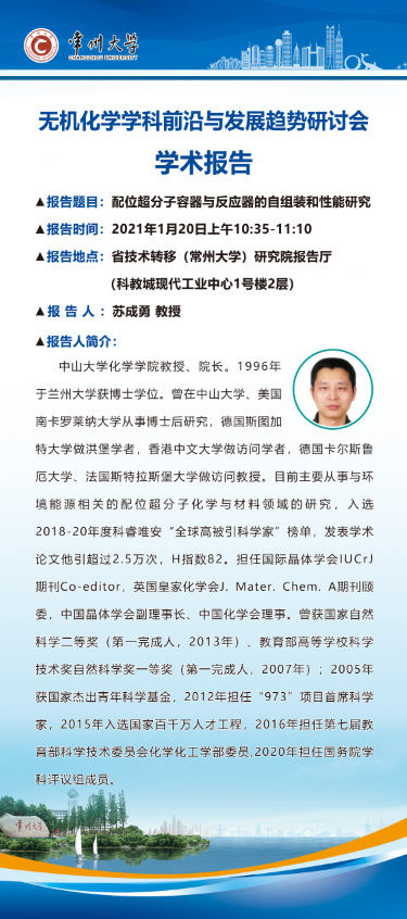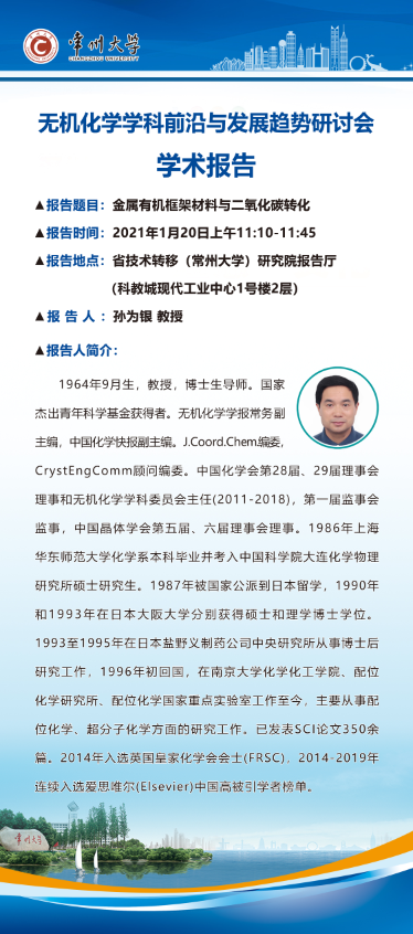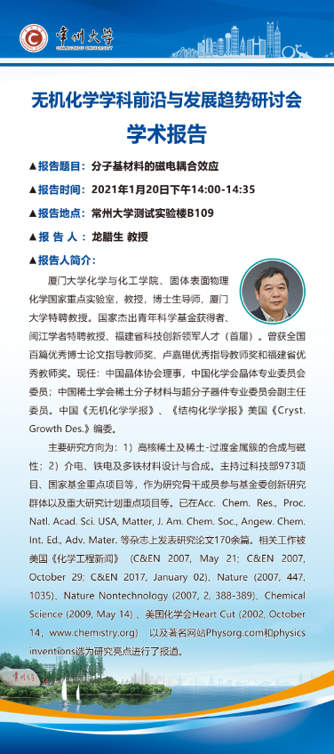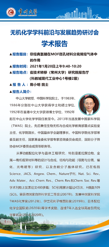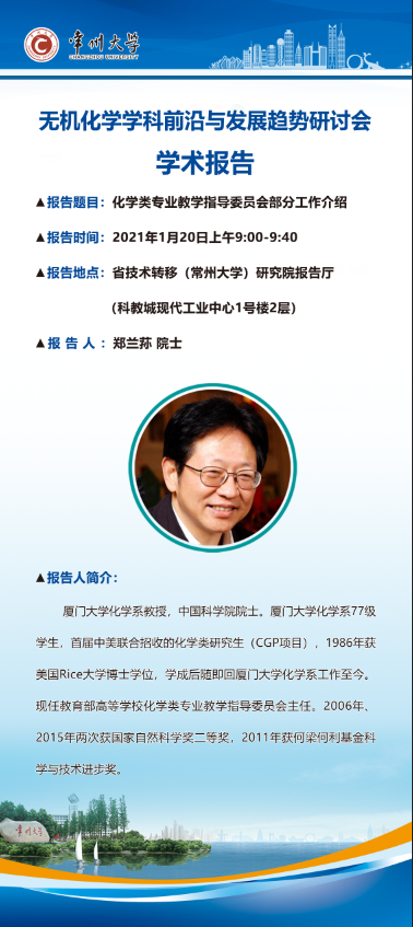【學術報告】1月20日無機化學學科前沿與發(fā)展趨勢研討會學術報告