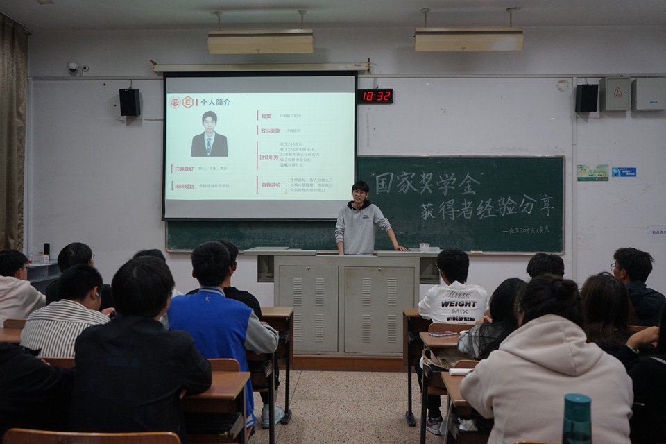 為幫助我院學(xué)生明確學(xué)習(xí)目標(biāo),掌握良好的學(xué)習(xí)習(xí)慣,營(yíng)造勤勉進(jìn)取的學(xué)習(xí)氛圍,我院于10月20日在W1202舉辦“石化青年說(shuō)”系列講座——“國(guó)家獎(jiǎng)學(xué)金”獲得者經(jīng)驗(yàn)分享。本次講座由我院“國(guó)家獎(jiǎng)學(xué)金”獲得者化工205班朱煥杰主講,各年級(jí)學(xué)生代表參加。