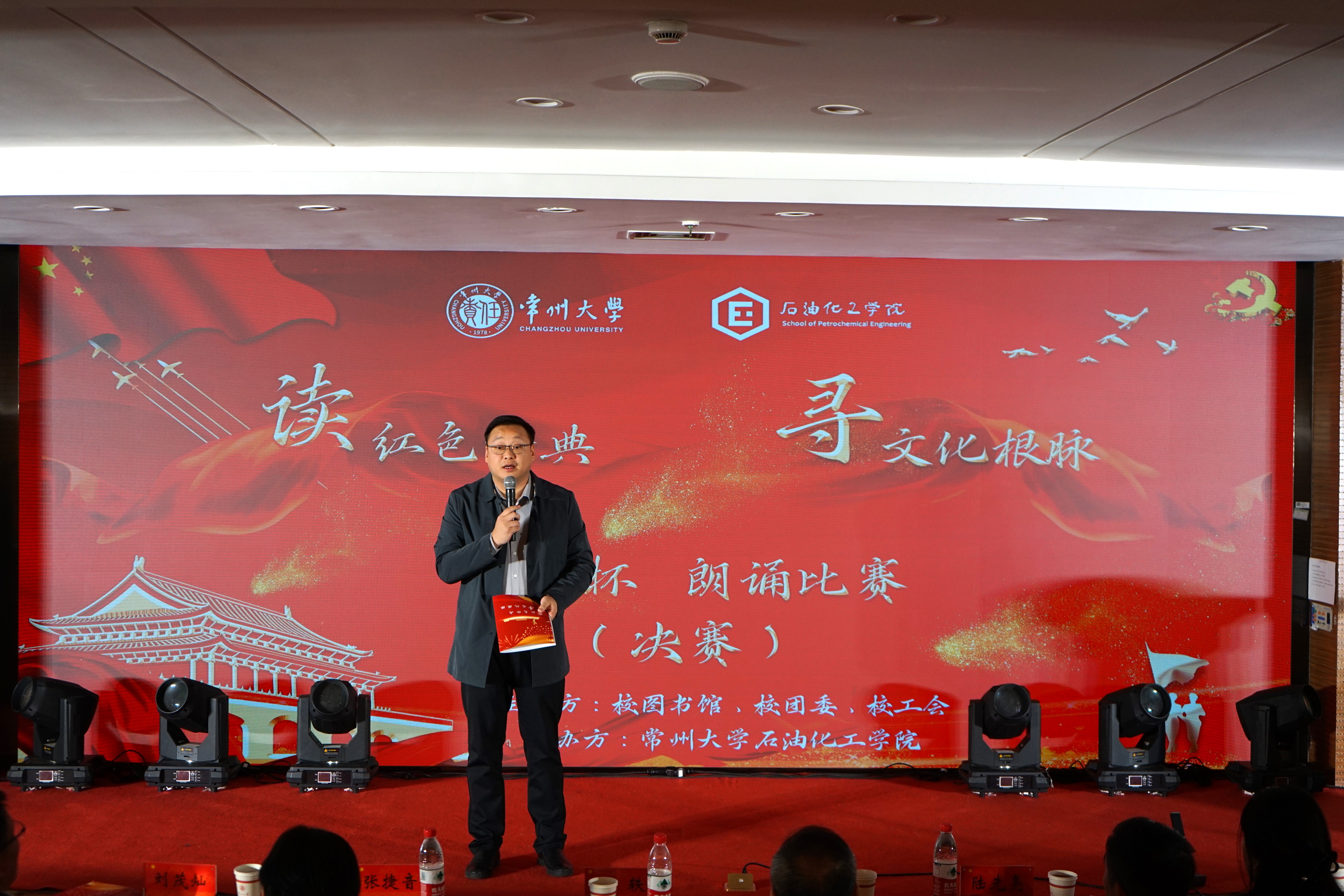 本次朗誦大賽是常州大學(xué)第十三屆讀書月系列活動之一,以“讀紅色經(jīng)典,尋文化根脈”為主題,重溫往日崢嶸歲月,頌揚(yáng)紅色贊歌。常州大學(xué)直屬單位書記姚致遠(yuǎn)、團(tuán)委書記田軼、學(xué)生處副處長陸先亮、工會副主席張捷音、吳敬璉經(jīng)濟(jì)學(xué)院副書記王彩芳、石油化工學(xué)院副書記劉茂燦、圖書館閱讀推廣部主任孫艷紅出席本次大賽。