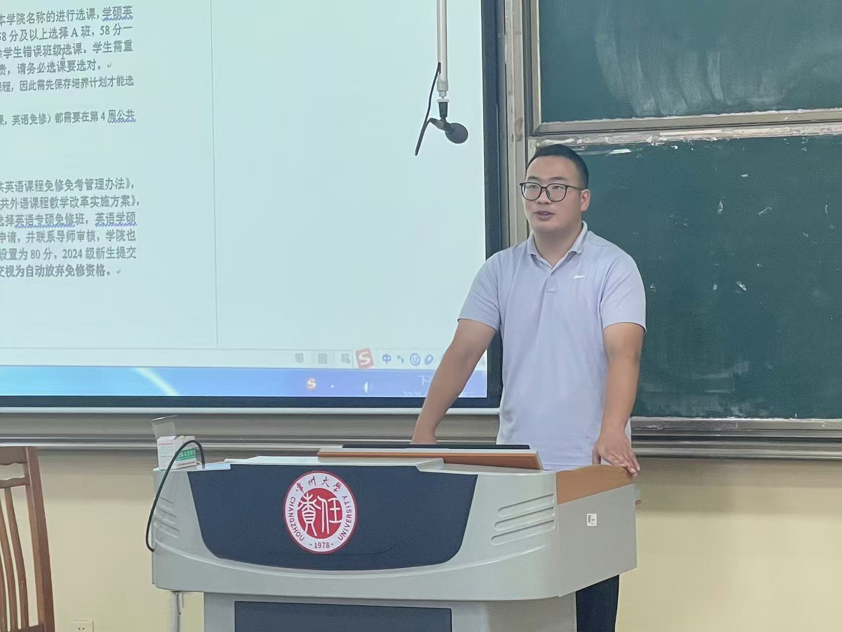 會上,趙彩霞、劉爽簡要介紹了自身工作內(nèi)容,并圍繞 “常州城市文化”、“常州大學校史”、“學院部門及其職能”、“學習科研與職業(yè)規(guī)劃”、“規(guī)章制度與評獎評優(yōu)”、“安全教育”六大核心板塊進行講解。隨后,研究生輔導員吳林就研究生綜合素質(zhì)評價與獎助學金評定的相關(guān)政策辦法進行了詳細解讀,幫助同學們明晰了未來努力的方向。接下來,學院研究生會主席呂燁松對研會各部門職能作了系統(tǒng)介紹,并鼓勵研究生新生踴躍報名加入,在實踐中鍛煉自我、服務(wù)同學、貢獻力量。最后,趙彩霞、劉爽分別對大會內(nèi)容進行總結(jié),希望同學們盡快適應(yīng)新環(huán)境、新身份,科學規(guī)劃研究生生活,積極參與學術(shù)研究與校園活動,全面提升綜合素養(yǎng)。