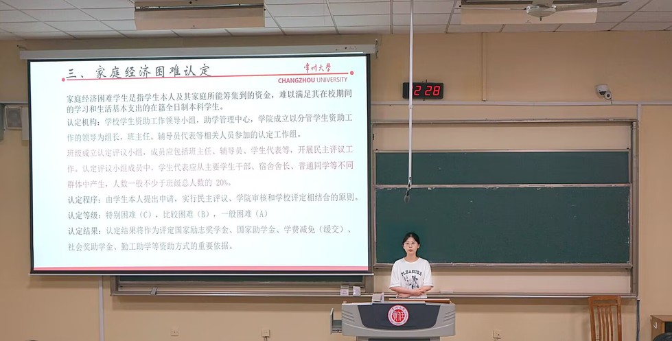 會議第二項議程,由輔導(dǎo)員何瑞玉為同學(xué)們進行資助政策解讀。何老師圍繞學(xué)生資助體系,詳細介紹了國家助學(xué)貸款、國家助學(xué)金、國家勵志獎學(xué)金、社會助學(xué)金以及學(xué)校各類專項資助項目的申請條件、流程和注意事項。她的講解細致全面,旨在幫助同學(xué)們清晰了解政策,徹底解除后顧之憂,決不讓經(jīng)濟問題成為求學(xué)路上的絆腳石,鼓勵大家放下包袱,專心學(xué)業(yè)。