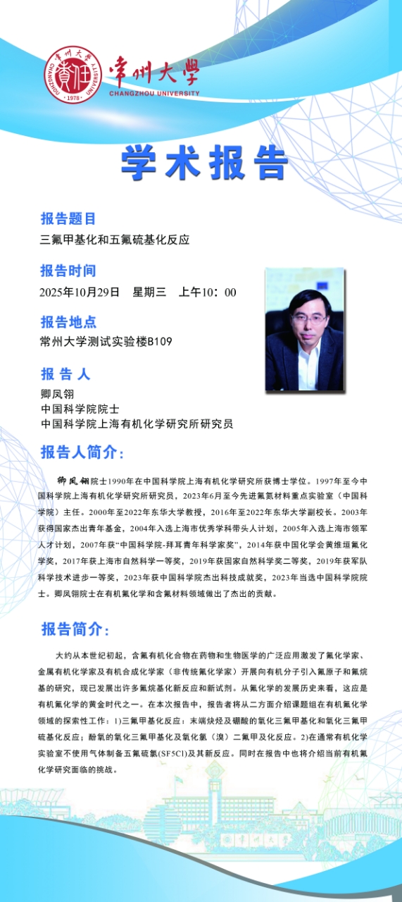 【學術報告】10月29日自然與合成有機化學研究院學術報告——卿鳳翎院士 中國科學院