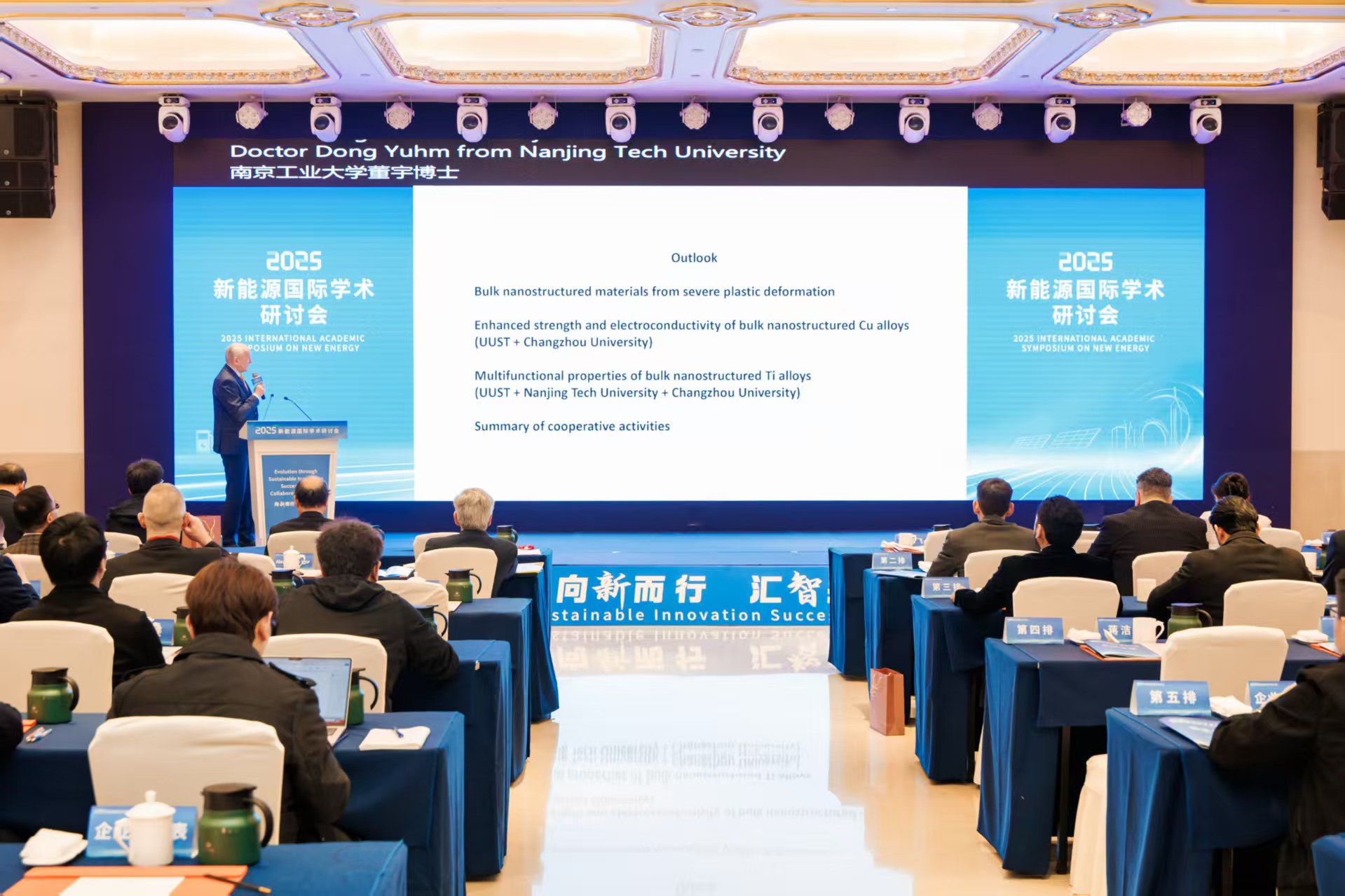 江蘇省科學技術(shù)協(xié)會二級巡視員楊文新,亞太工程組織聯(lián)合會執(zhí)委、新興技術(shù)委員會主席王慶林,常州市科協(xié)主席任洪興,常州經(jīng)開區(qū)組織部部長陸偉,中國政府友誼獎獲得者、俄羅斯烏法科技大學原副校長伊格?亞歷山卓夫,美國科羅拉多礦業(yè)大學教授、NanoSPD國際組織副主席、美國鍛造工業(yè)教育研究基金會特聘教授特里?柯蒂斯?洛,英國東英吉利大學教授、英國皇家化學會會士、國家級人才巢毅敏,阿根廷薩爾米恩托國立大學副校長赫爾曼?皮納佐等來自美國、英國、俄羅斯、韓國、墨西哥、阿根廷等國的21位外籍專家學者,以及常州市科學技術(shù)協(xié)會、常州企業(yè)家代表120余人參加會議。常州大學黨委常委、副校長李亞飛及相關(guān)職能部門、學院負責人參加會議。國際交流處處長魏偉主持開幕式。