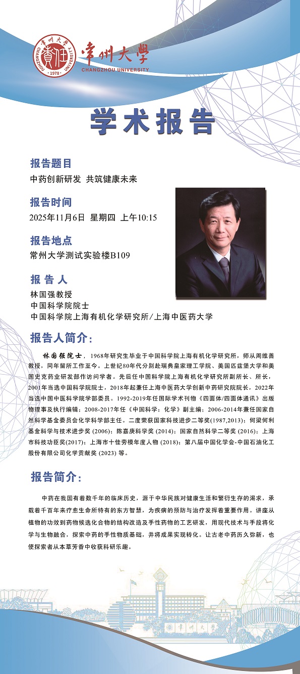 | 【學(xué)術(shù)報(bào)告】11月6日自然與合成有機(jī)化學(xué)研究院學(xué)術(shù)報(bào)告——林國強(qiáng)院士 中國科學(xué)院 |