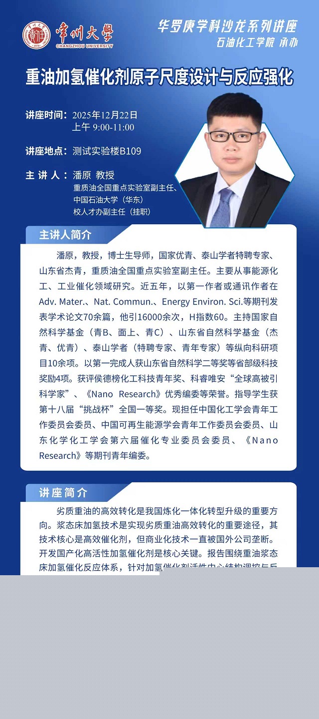 | 【學術(shù)報告】12月22日學術(shù)報告——馮翔教授 潘原教授 中國石油大學(華東) 岳源源教授 福州大學 |